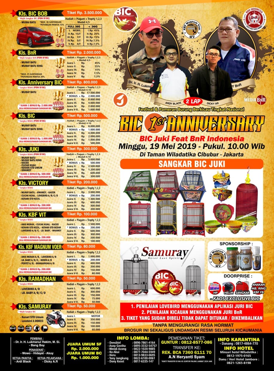 Anniversary 1st BIC + Add to Google Calendar + iCal export Tags: Bird Contest, BNR Award, Branjangan, breeding, Colibri, Cucak Hijau, Cucak Jenggot, Dunia burung, Dunia Kicau, Hobi Burung, Jadwal Lomba, jalak suren Date 19 May 2019 Time 10:00 - 21:00 More Info Read More Share this event