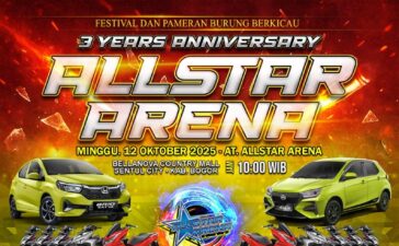 ANNIVERSARY 3TH ALLSTAR ARENA | 12 OKTOBER 2025Gomez Birdaily15 September 2025Brosur Anniversary 3th Allstar Arena Jadwal Anniversary 3th Allstar Arena Tata Cara Gantang Otomatis Anniversary 3th Allstar Arena Pakem Penilaian...